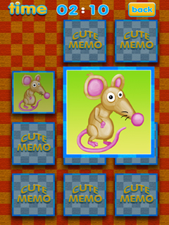 Train your brain with the cutest Memory game you can find. You'll match cuddly bunnies and litte chicklets and many more lovely animals. Get ready that your brain's memory will be challenged on dynamic levels from various cute animal images.There's a surprise beneath every card. Match the pairs as fast as you can and set the new highscore! The rules of the Cute Memo memory game are easy: It is the basic memory game and it consists of a 3x3 matrix. The faster you complete each game the more points will be added to your score.